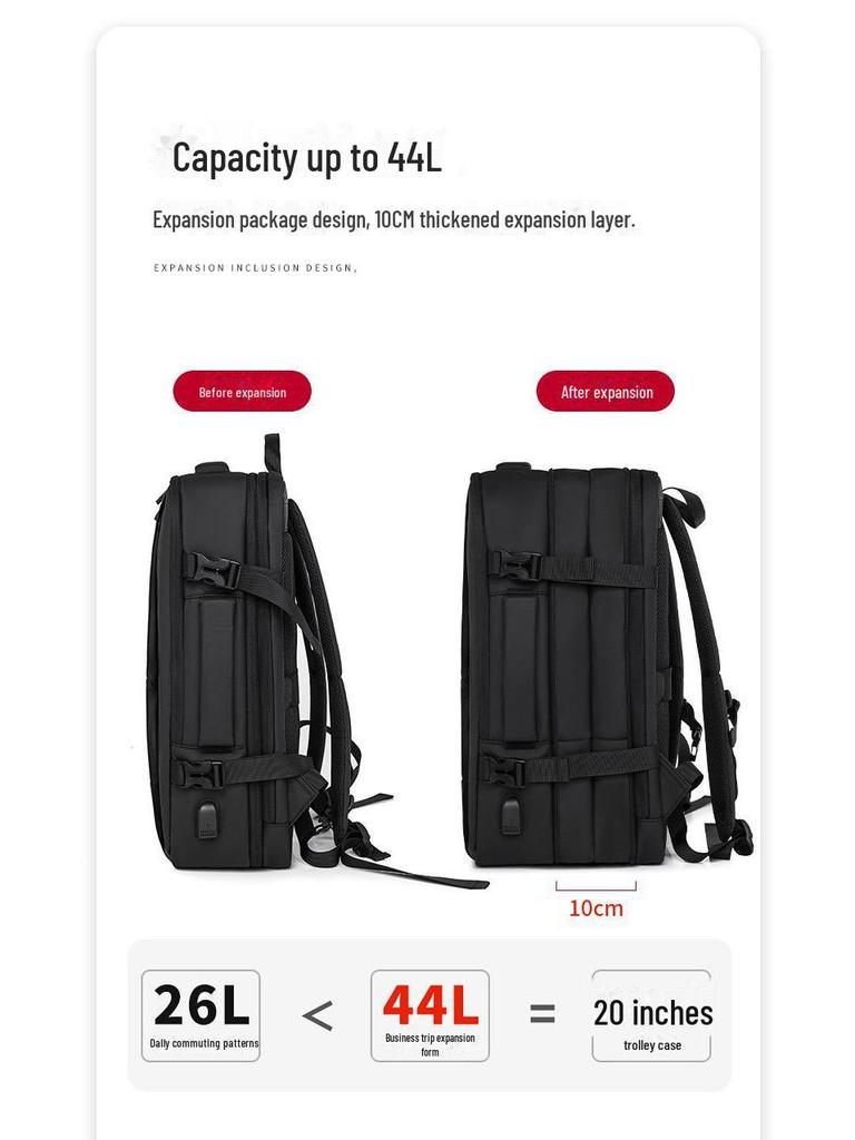 Мужской расширяемый рюкзак для деловых поездок: Большая вместимость для длинных и коротких расстояний