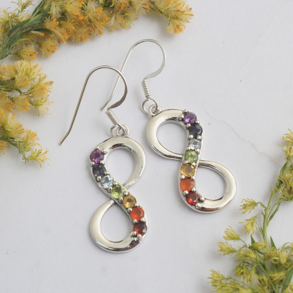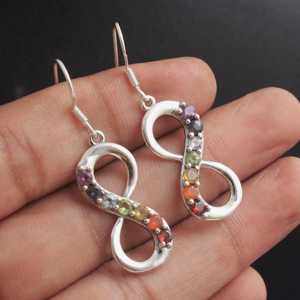 Серьги-подвески Chakra Infinity из цельного серебра 925 пробы с 7 камнями для женщин
