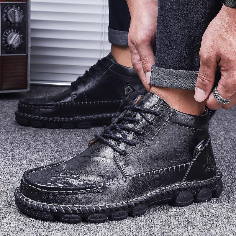 38-48 Мужские повседневные туфли из резиновой кожи ручной работы большого размера Мягкая подошва Свадебные туфли Кожаные ботинки для мужчин Ботинки для мужчин