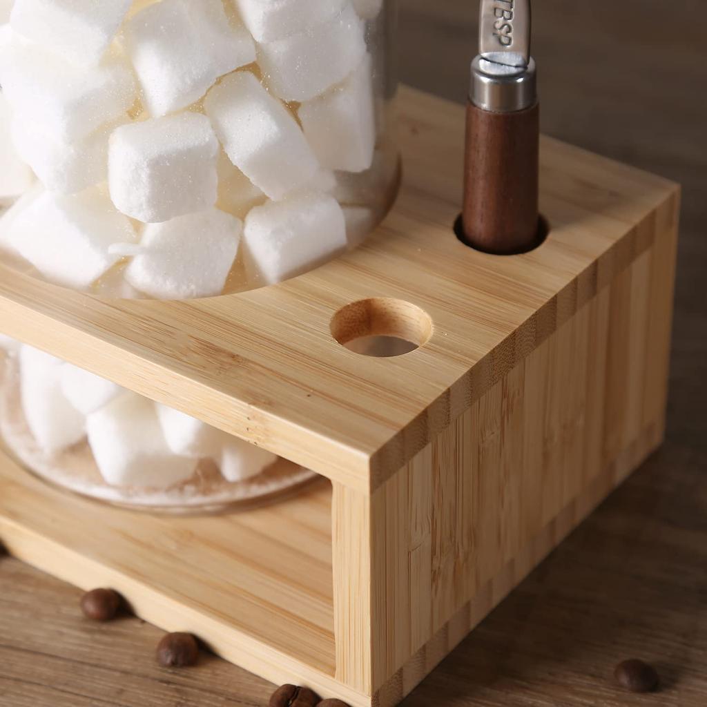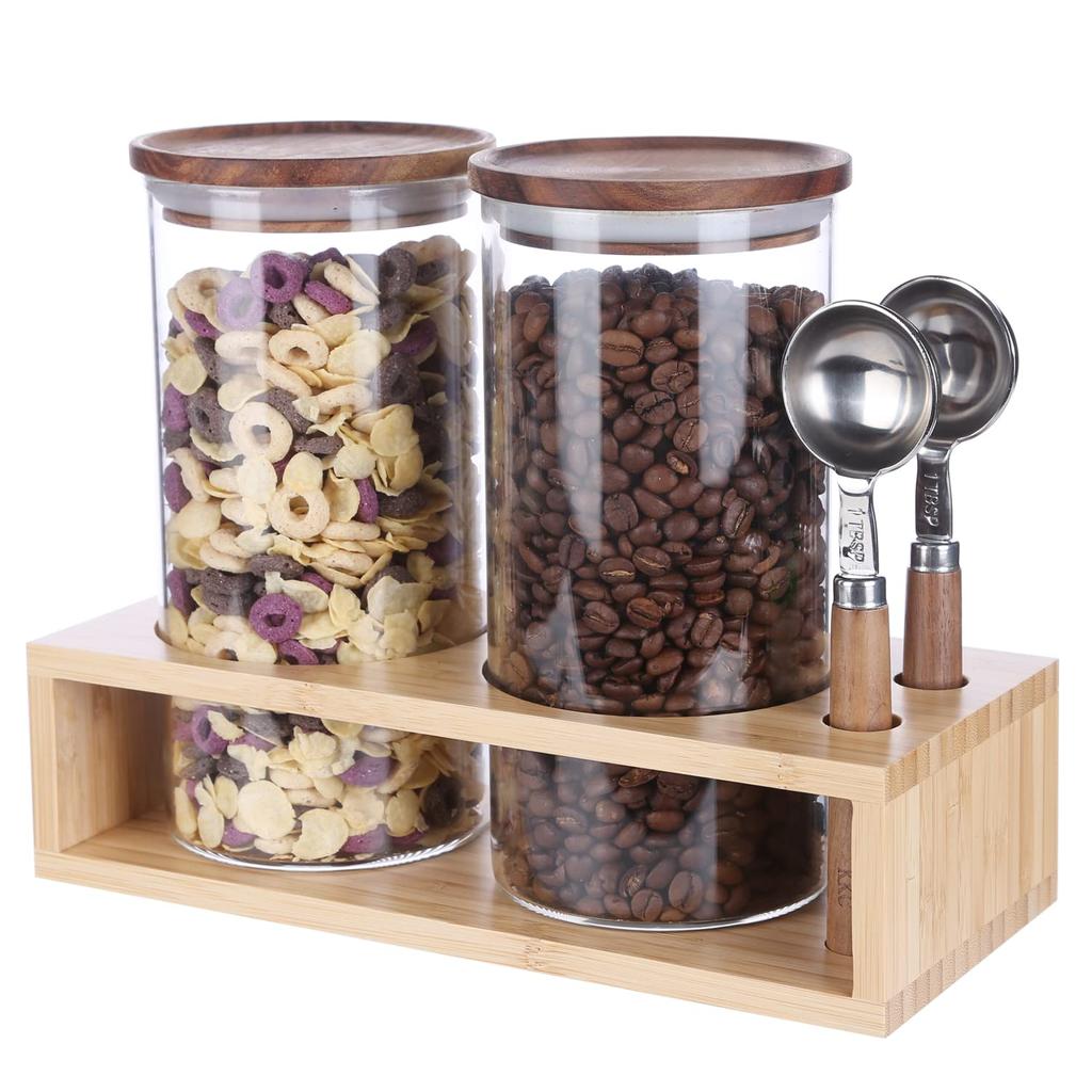 [Полезен в различных сценах] Полностью прозрачен и имеет простой дизайн, который можно использовать различными способами.. Вы можете хранить не только кофейные зерна, орехи, сахар, чай, травы, специи и т. д., но также аксессуары, текстильные изделия и т. д.. Он аккуратно организует увеличивающееся количество мелких предметов.. Если закрыть деревянную крышку (с силиконовой прокладкой) плотно закрывается, идеально подходит для хранения.