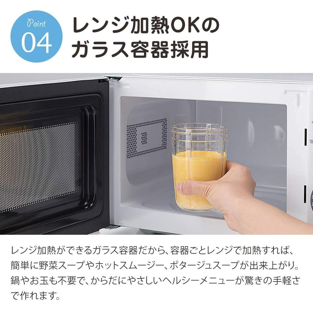 Использует стеклянную емкость, которую можно разогревать в микроволновой печи.: Контейнер можно разогреть в микроволновой печи, и тогда сок из овощей после измельчения можно использовать в качестве супа-пюре.