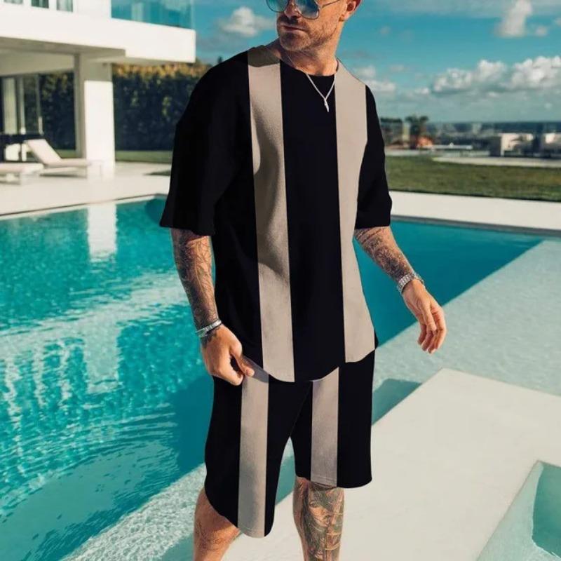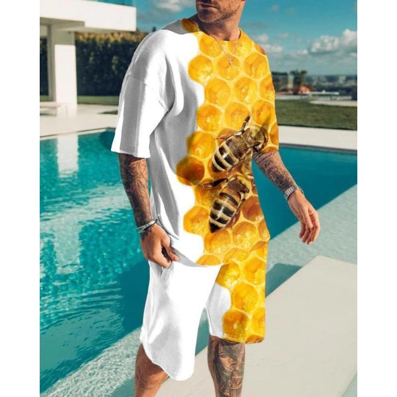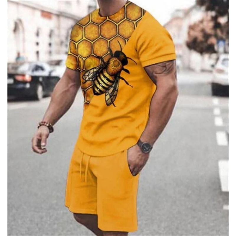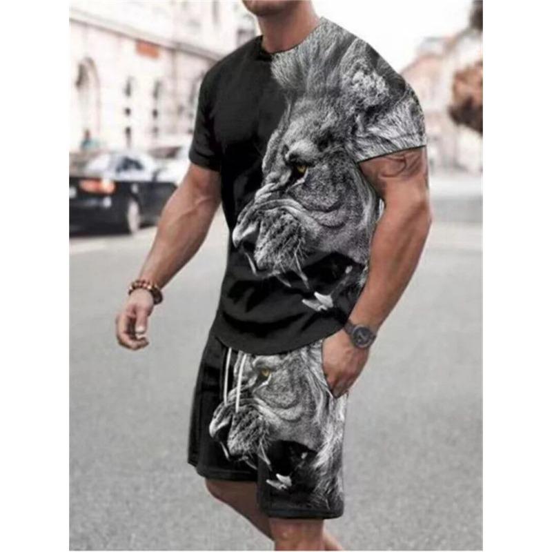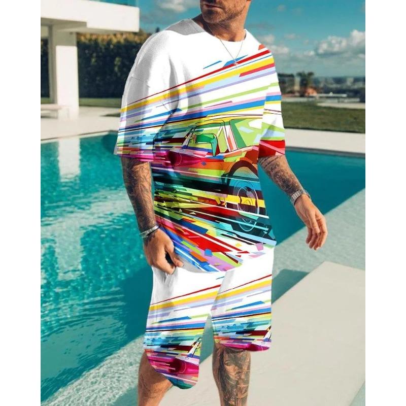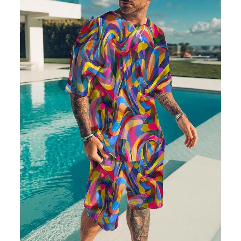 Летний 3D-принт с геометрическим рисунком, повседневный спортивный костюм для походов, мужской костюм, футболка с короткими рукавами + уличные шорты, комплект из двух предметов