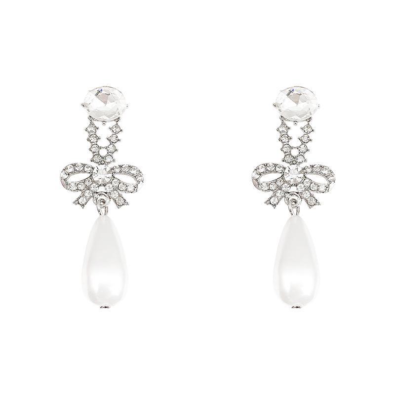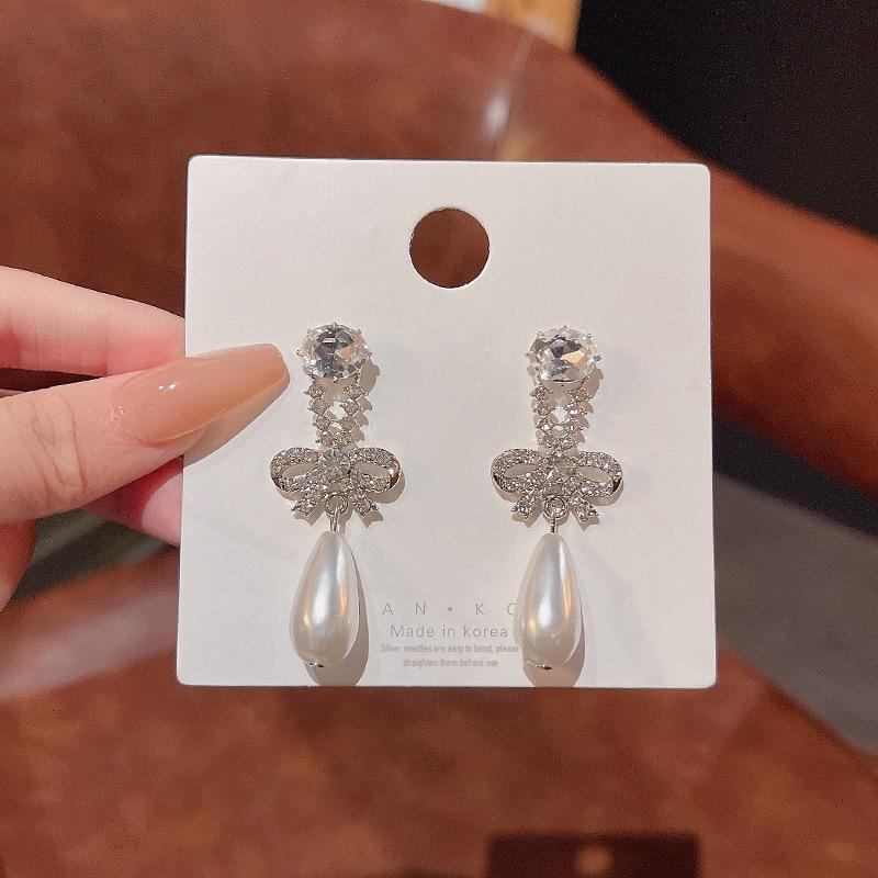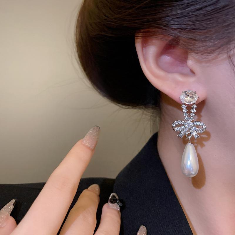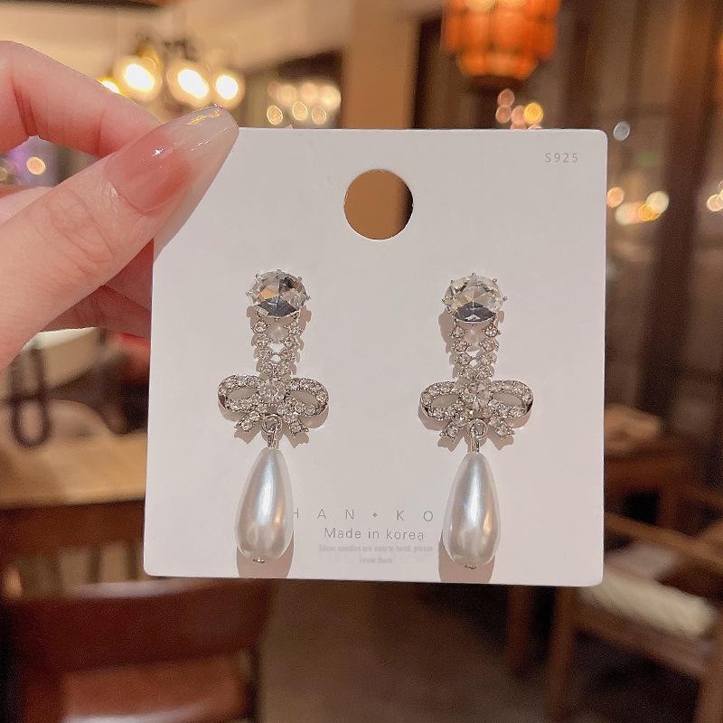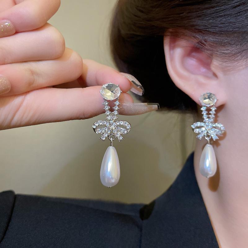 Серебряные серьги-бантики S925 с бриллиантами и жемчугом — стиль ретро-легкой роскоши для женщин