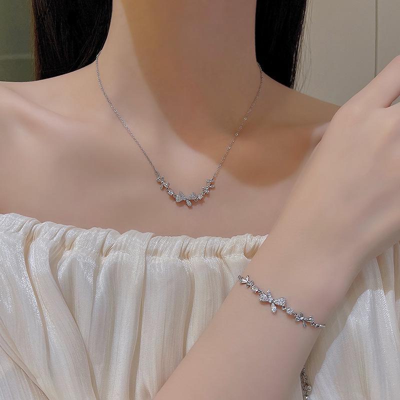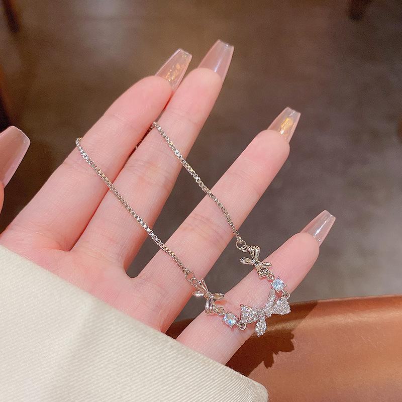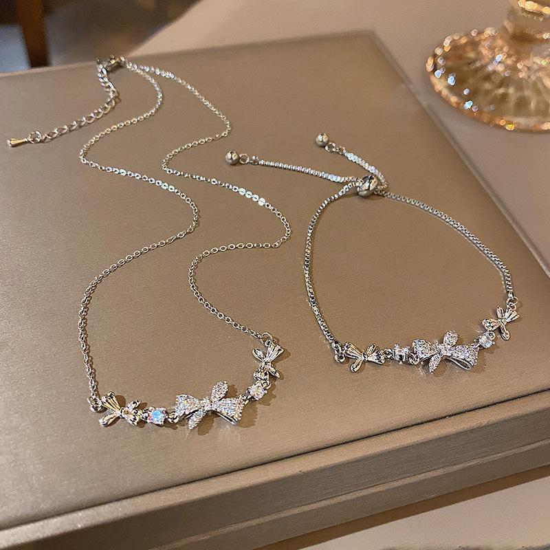Корейский модный комплект из титанового ожерелья и браслета с микробриллиантовым бантом