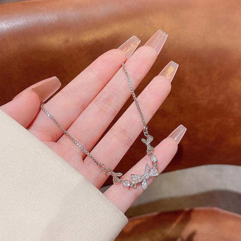 Элегантный браслет с бриллиантами в виде бабочки - модные корейские женские украшения из титановой стали