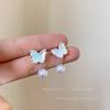 Серьги-бабочки из серебра 925 пробы с кристаллами и жемчугом - легкий роскошный стиль