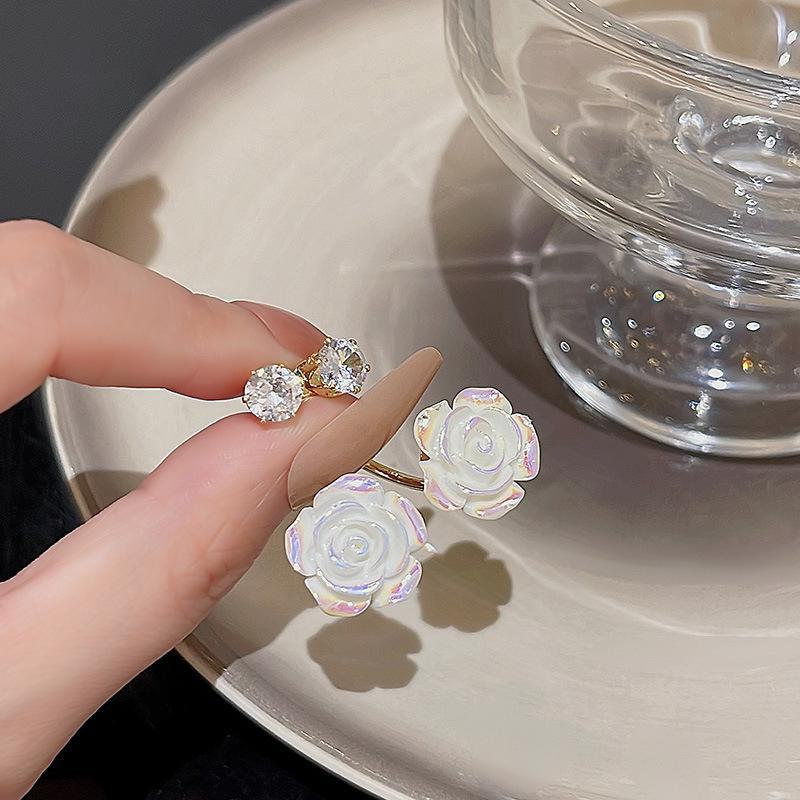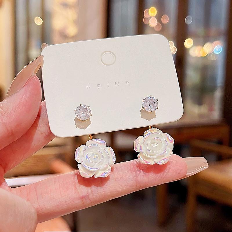 Серьги с цветком камелии из серебра 925 пробы и цирконием: Модная, роскошная, универсальная, двусторонняя одежда для женщин