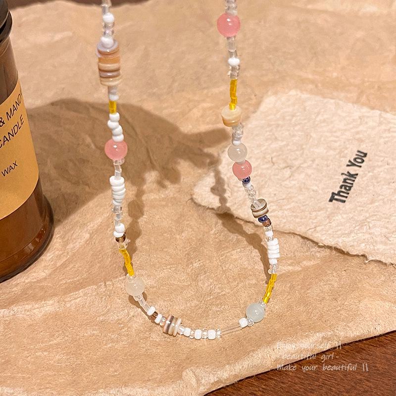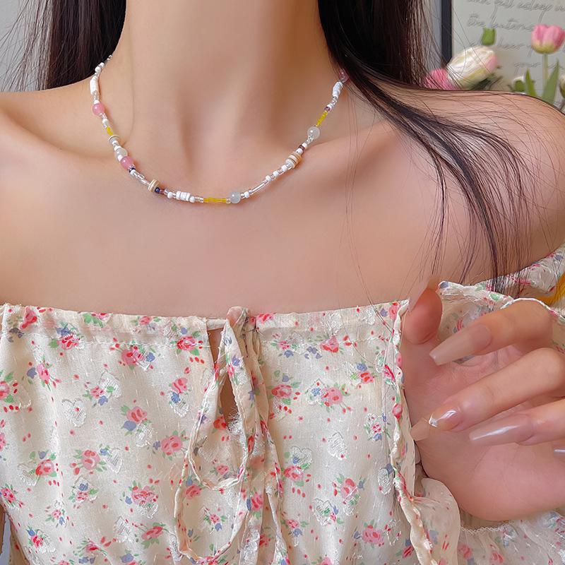 Ожерелье из разноцветных кристаллов и бусин: Легкая роскошь в стиле Xiaohongshu, свежая цепочка на ключицу для женщин