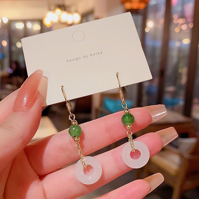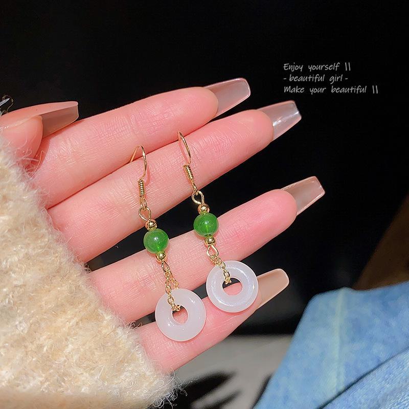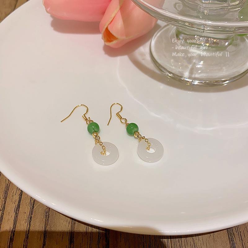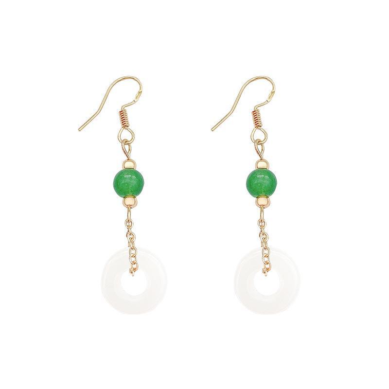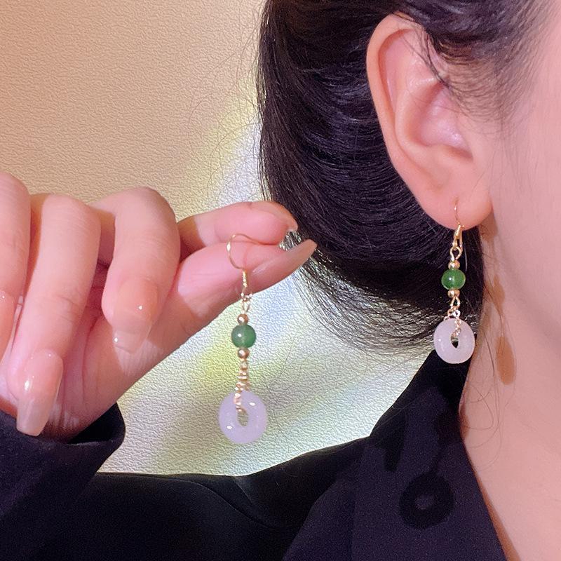 Серьги-пряжки в китайском стиле в стиле ретро с геометрическим узором для женщин - ювелирные изделия из искусственного халцедона высшего качества
