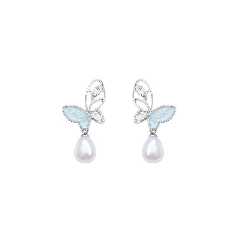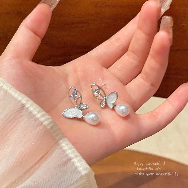 Элегантные серьги с бабочками и жемчугом для женщин - серебро S925, дизайн со сверкающим цирконием