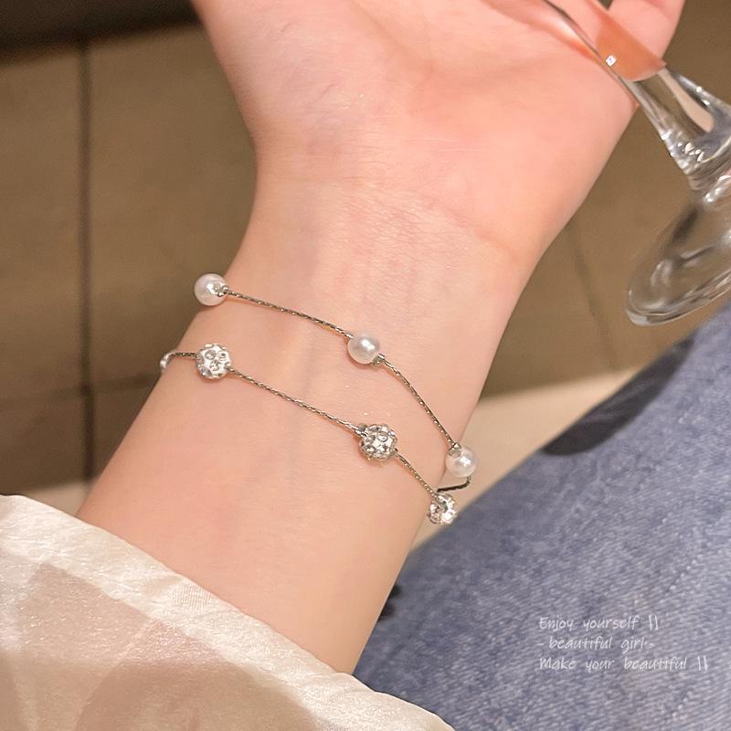 Корейский двухслойный браслет из жемчуга со звездным небом и бриллиантовыми бусинами — в том же стиле, что и браслет Internet Celebrity
