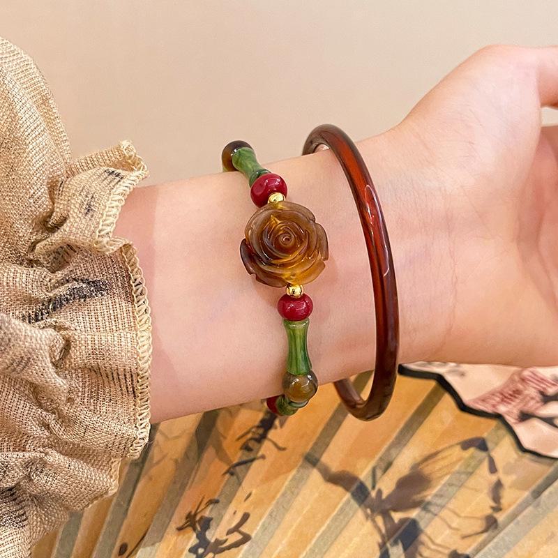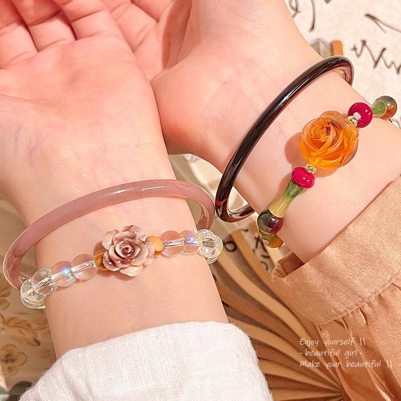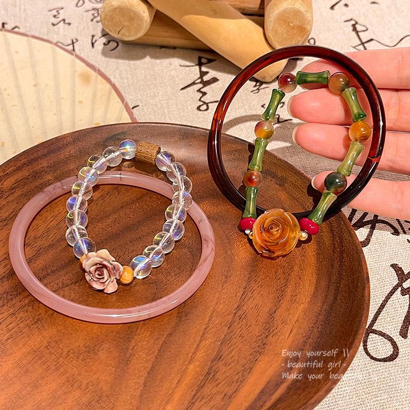 Элегантный средневековый браслет в китайском стиле с бусинами из сушеных розовых кристаллов для женщин