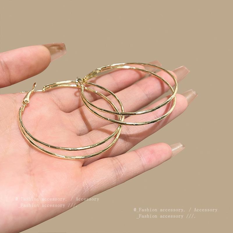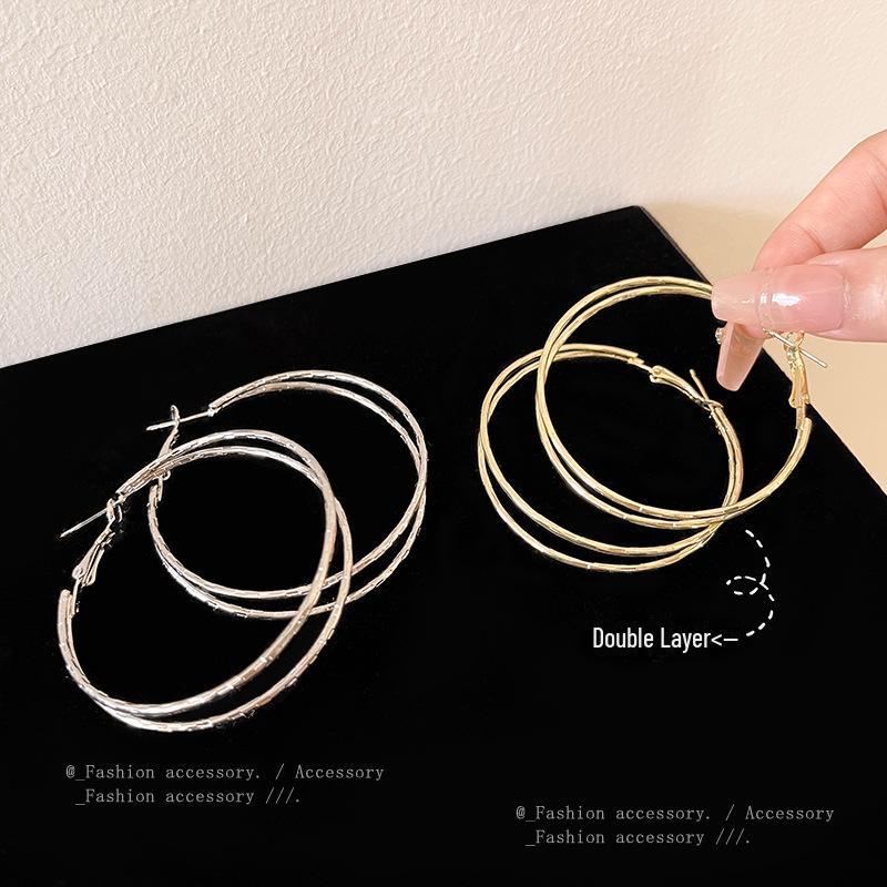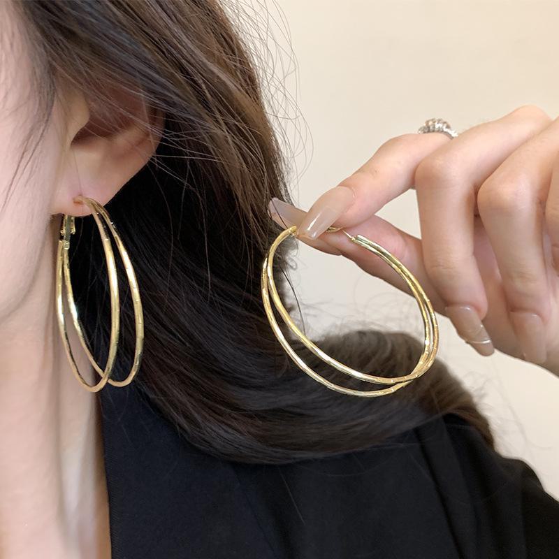 Элегантные двухслойные большие серьги-кольца для женщин — шикарный, легкий роскошный дизайн, представленный законодателями моды