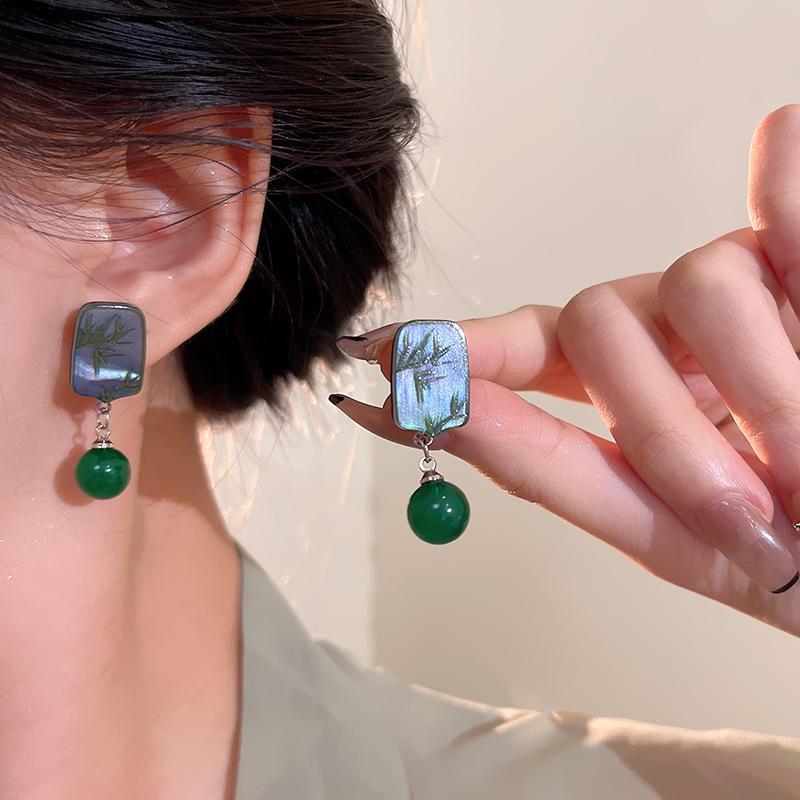 Геометрические серьги в современном китайском стиле с имитацией зеленого агата – национальный тренд, универсальный дизайн — купить товар онлайн с бесплатной доставкой до всему миру!