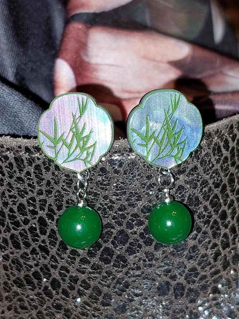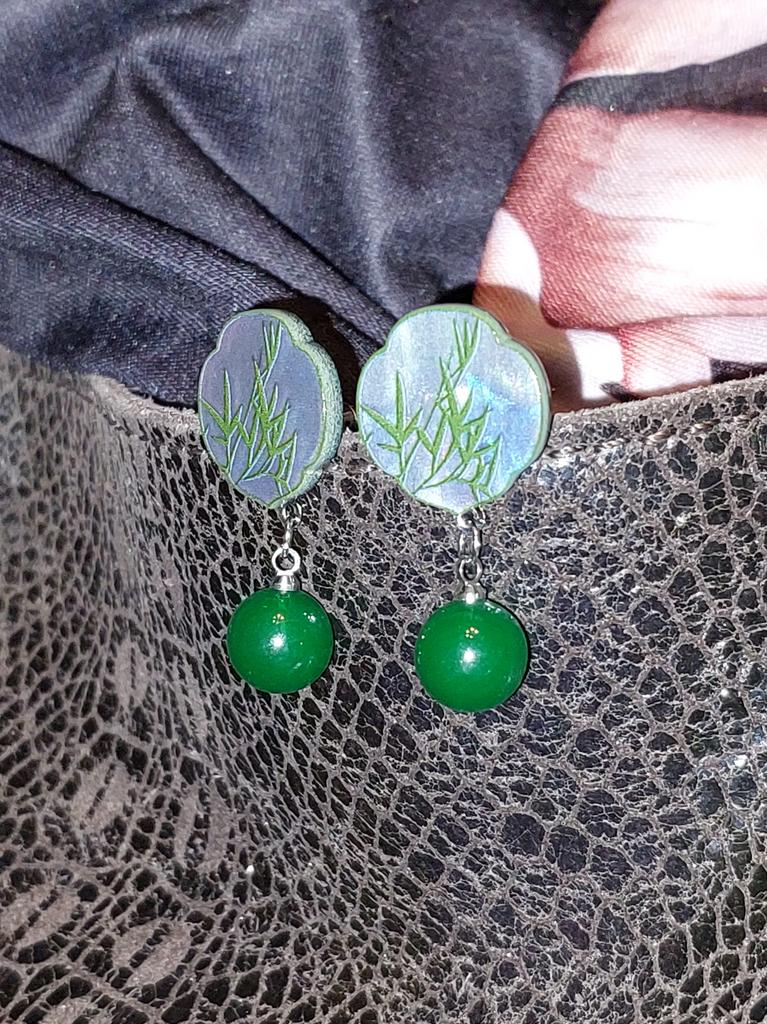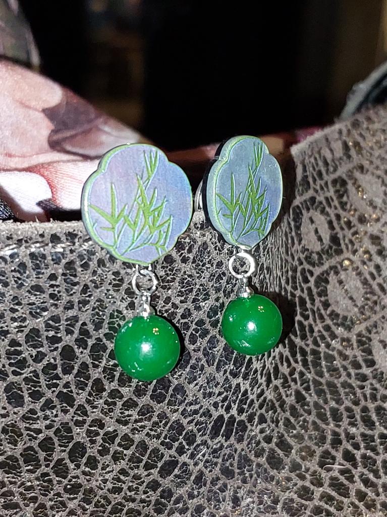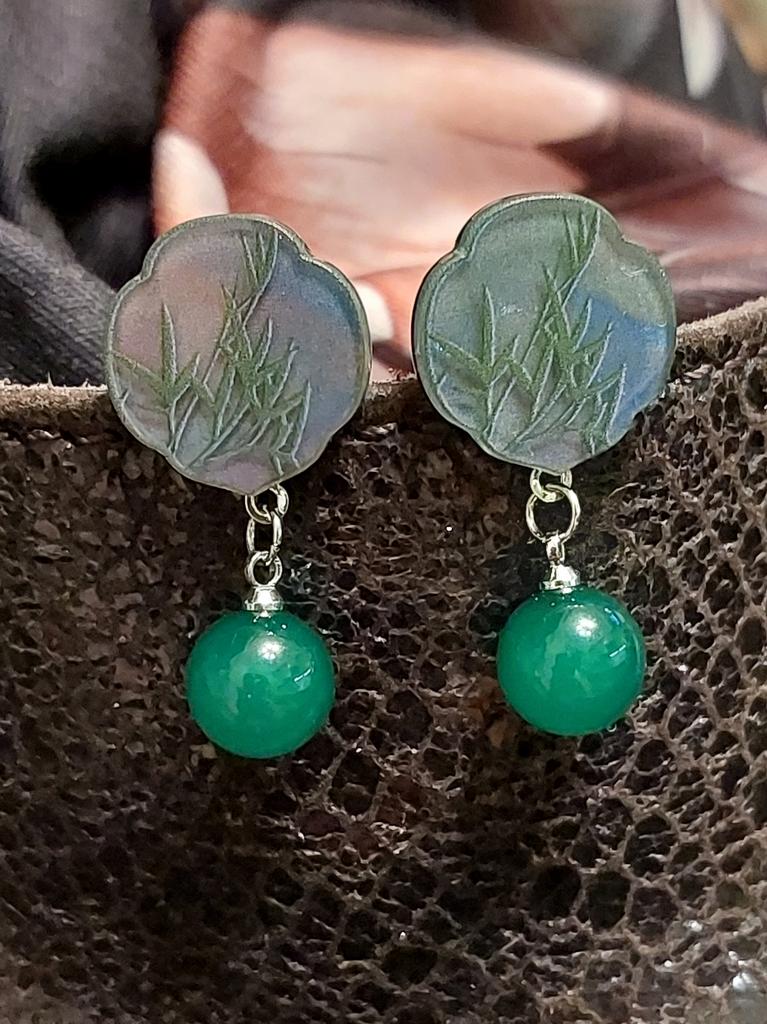 Геометрические серьги в современном китайском стиле с имитацией зеленого агата – национальный тренд, универсальный дизайн