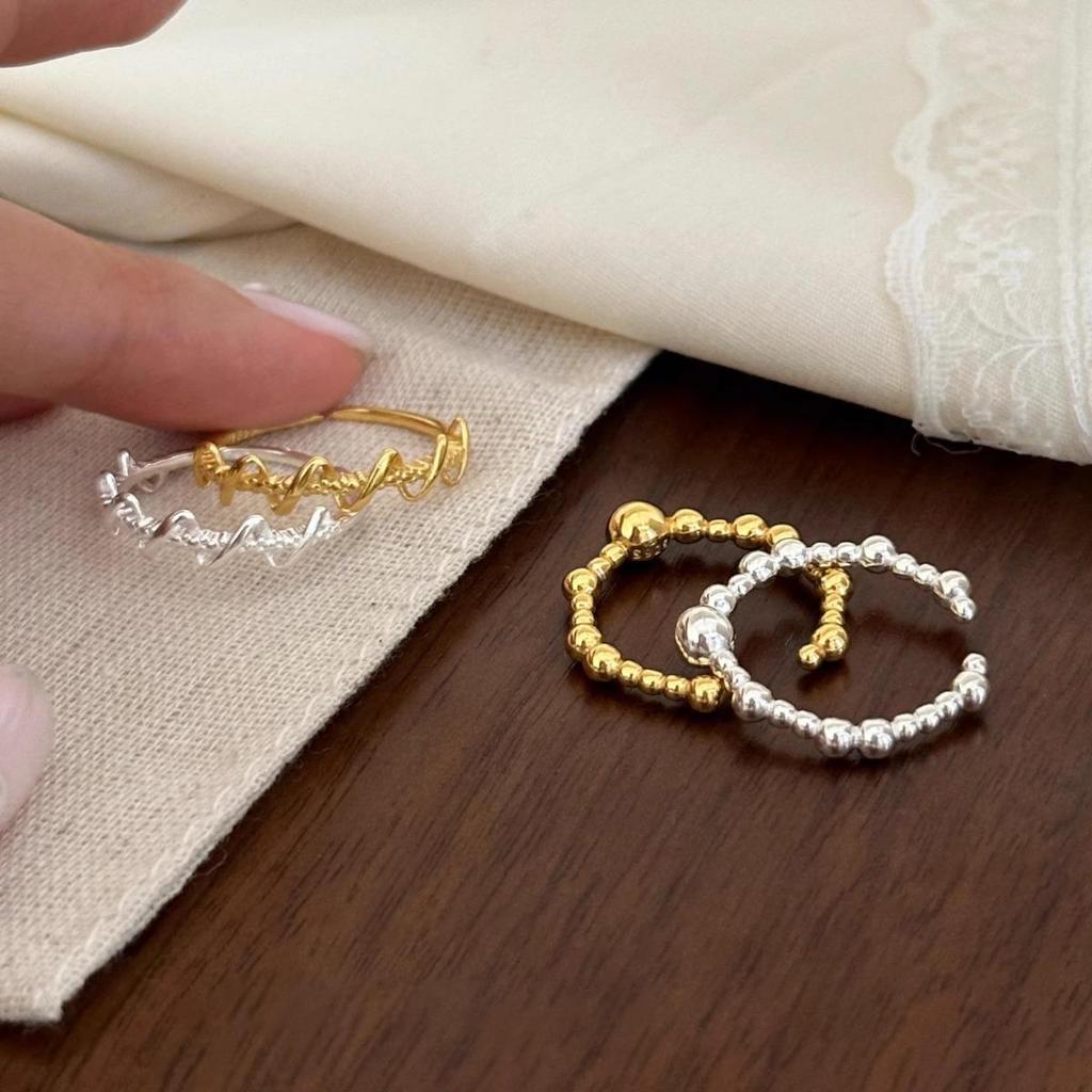 Открытое кольцо из посеребренной стали S925: Геометрический волнистый дизайн для женщин, универсальный аксессуар для указательного пальца