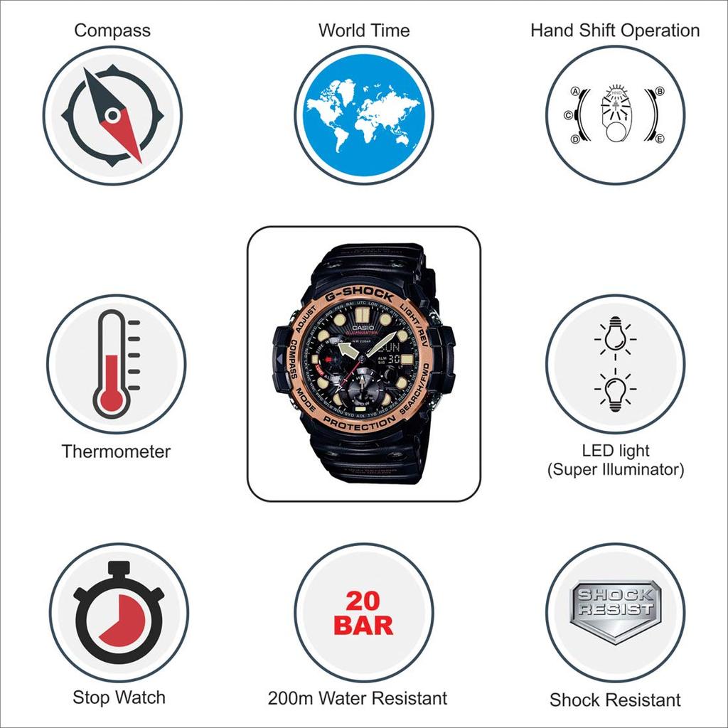 Часы CASIO Gulfmaster Black Rose Gold G-SHOCK & GN-1000RG-1A мужские [Товар]