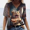 Женская футболка с рисунком кошки, 3D-футболки, винтажные летние футболки с коротким рукавом и V-образным вырезом, повседневные праздничные футболки