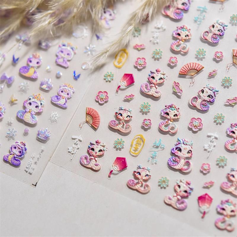 Рельефные наклейки для ногтей в китайском стиле в стиле змеиного года, милые наклейки для ногтей в виде змеи, декоративные наклейки своими руками, аксессуары для года, подарочные наклейки