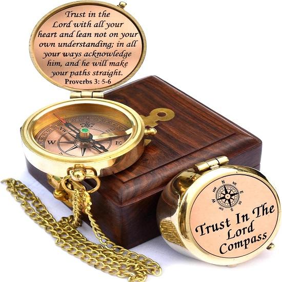 Компас с гравировкой «Доверься Господу всем сердцем твоим»