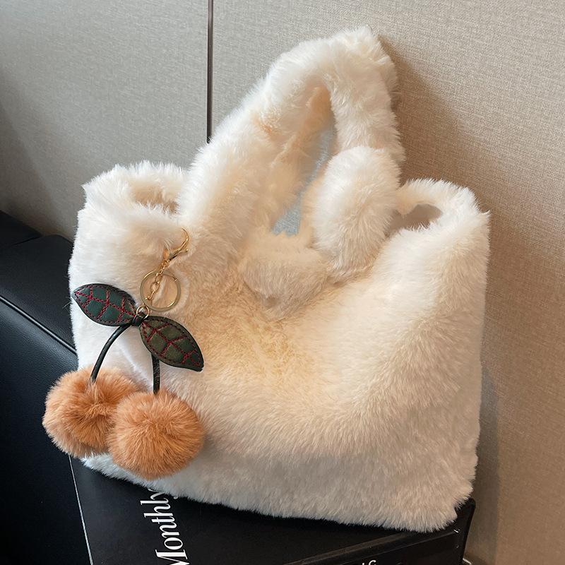 Теплая плюшевая сумка Huhu, пушистая сумка, переносная сумка-тоут, большая вместимость, пушистая сумка через плечо, сумка для студентов колледжа.