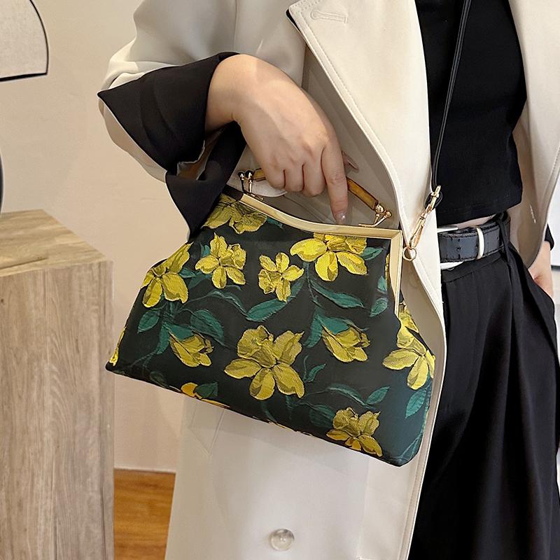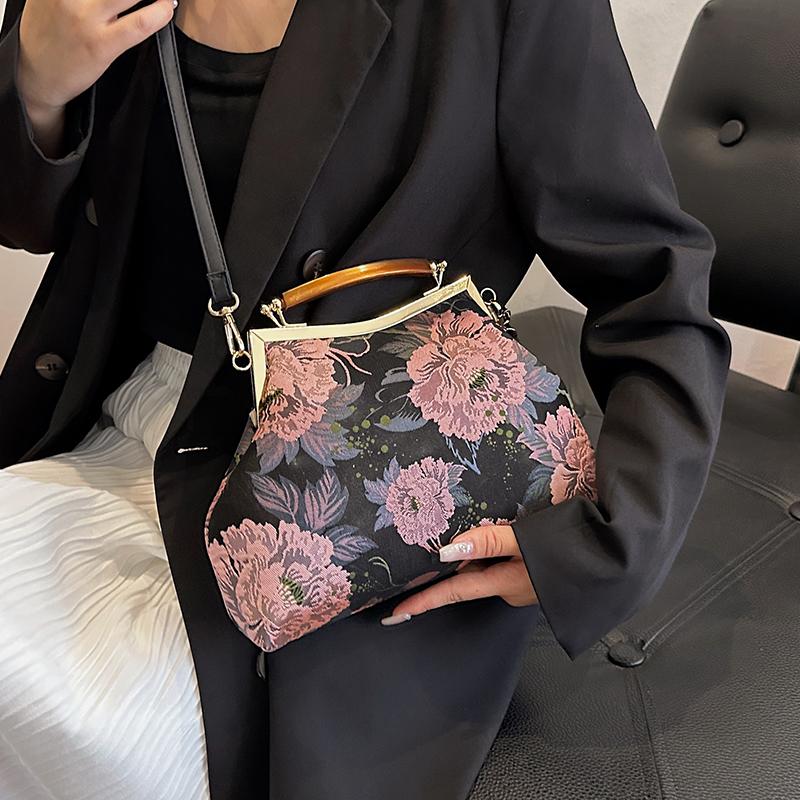 Винтажный цветочный узор вечерний клатч клатч с деревянной ручкой антикварная сумка через плечо с замком-поцелуем сумка с замком-рамкой