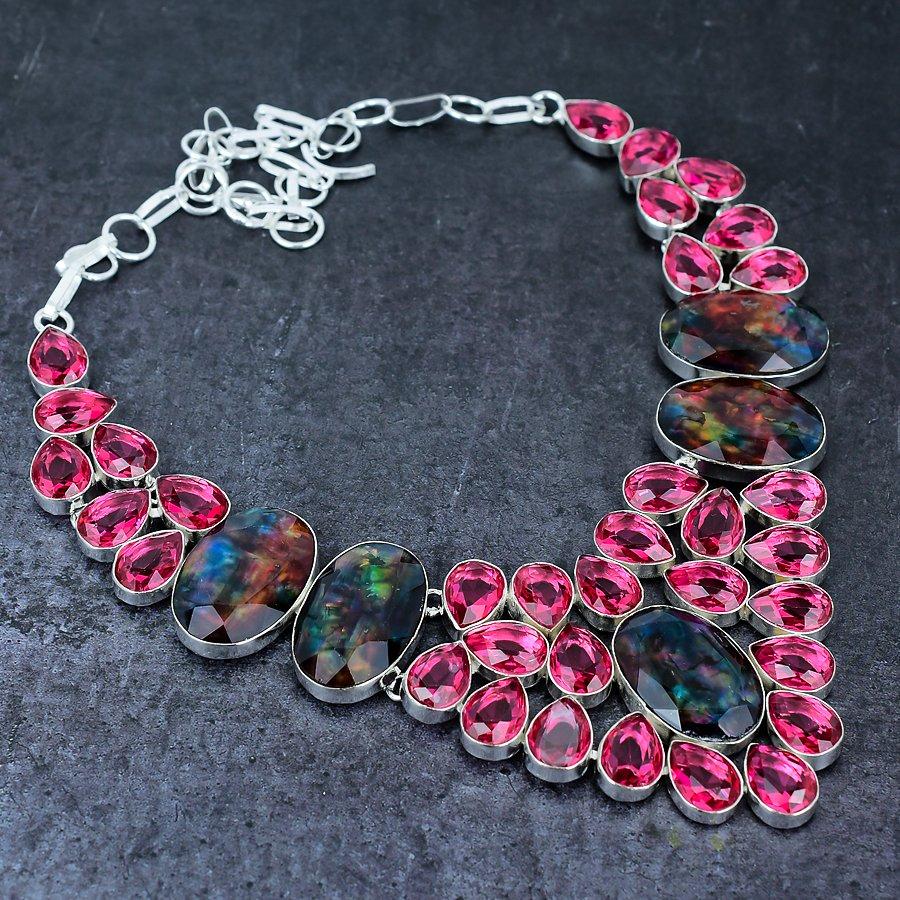 Аммолит, рубиллит, ручная работа, серебряное ожерелье 925 пробы, 18 дюймов, R3B80