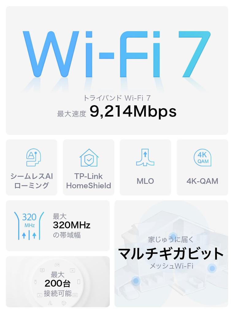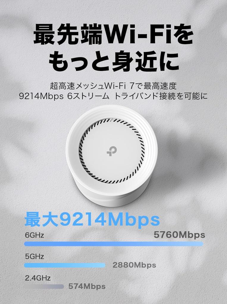 WiFi 7 Маршрутизатор Mesh Система WiFi 5760 Мбит/с 2880 Мбит/с 574 Мбит/с 1x Ethernet Порт Бесшовный AI Mesh MLO 320 МГц 2 блока Deco BE65 TP-Link Tri-Band (6 ГГц) +