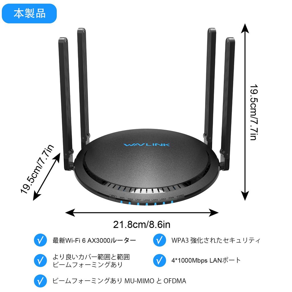 - Предоставляет 1 x Gigabit WAN + 4 x Gigabit LAN (1000Mbps) для высокоскоростного проводного интернета. - Поддерживает 1 порт USB3.0 для Samba. - Патент TouchLink: Просто коснитесь верхней части этого маршрутизатора WAVLINK и мгновенно поделитесь своим WiFi с гостями.. ・Защитите безопасность сети с помощью WPA2/WPA3-PSK MIX. - Поддерживает IPV4/IPV6. - Настройте его за считанные минуты с помощью приложения WavRouter или веб-интерфейса, легко управляйте настройками WiFi и отслеживайте использование данных.
