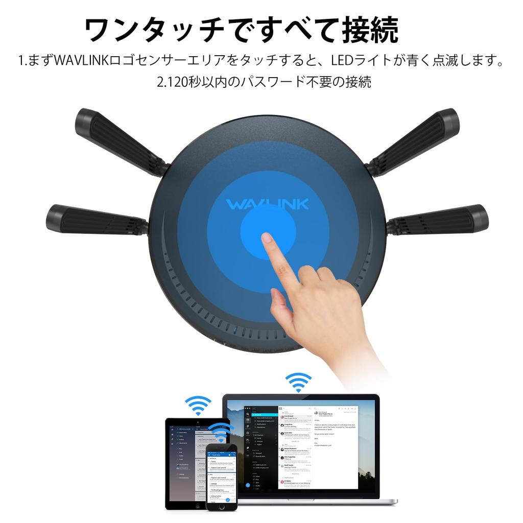 【Запатентованная технология TouchLink】TouchLink — это оригинальная технология Wi-Fi, разработанная командой WAVLINK R&D.. Вы можете подключиться к Wi-Fi, просто прикоснувшись к сенсорной панели, что избавит вас от необходимости запоминать сложные пароли.. Легко делитесь своим Wi-Fi с друзьями и гостями, не разглашая свой пароль. Пожалуйста, обрати внимание: Подключение без пароля в течение 120 секунд.