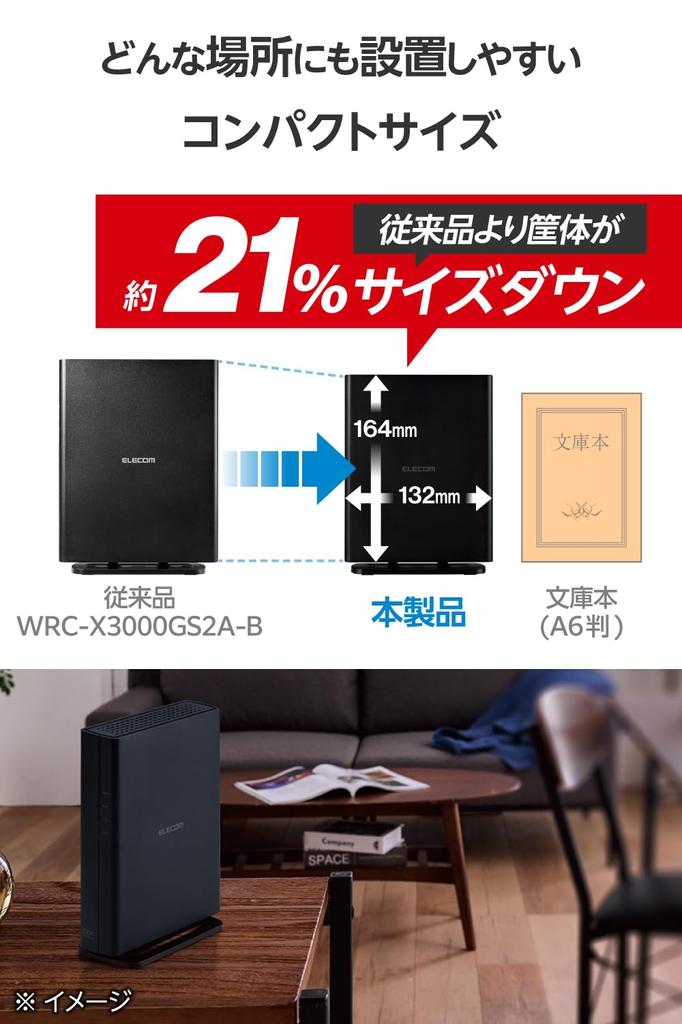 Корпус примерно на 21% меньше обычного продукта. (WRC-X3000GS2-B). Это компактная модель, которую можно установить в любом месте.