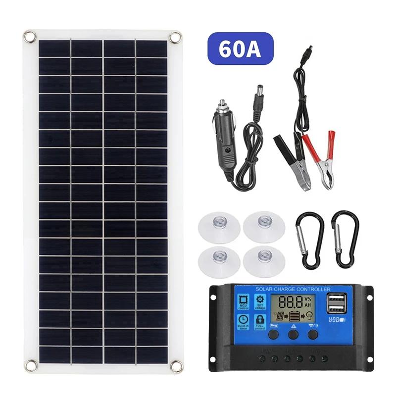 Оснащен 40 Вт уличной USB 5 В гибкой солнечной панелью + контроллер 60 А, набор подходит для кемпинга в автодоме, пеших походов, зарядного устройства, источника питания