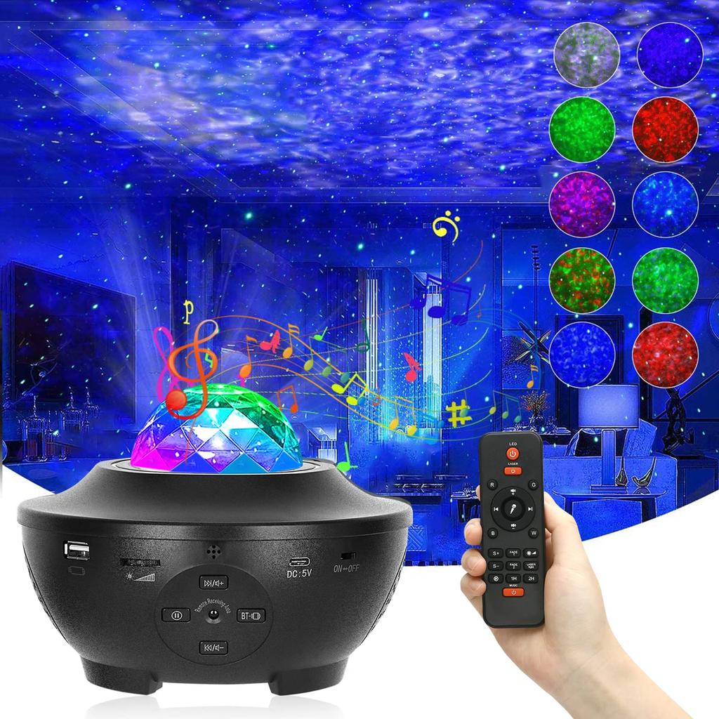 ★[Пульт дистанционного управления и голосовое управление] Пульт дистанционного управления позволяет менять цвета, регулировать яркость/скорость волны, менять режим освещения, устанавливать таймер, регулировать циркуляцию света и включать/выключать освещение.. Активация звука позволяет синхронизировать проекцию и музыку.. Пожалуйста, обрати внимание: Для пульта дистанционного управления требуются 2 батарейки типа ААА, которые продаются отдельно.