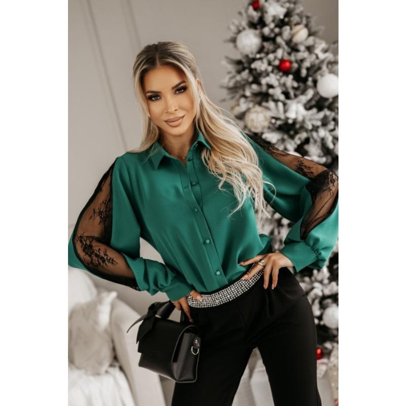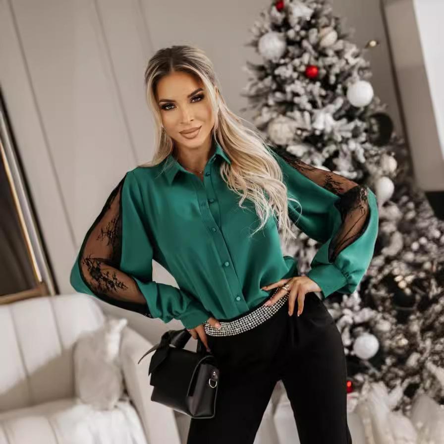 Весенняя женская рубашка с длинным рукавом и лацканами из кружева