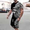 Модный мужской спортивный костюм с принтом тигра, свободный мужской топ в стиле Y2K, дышащий, свежий, с коротким рукавом, шорты, костюм