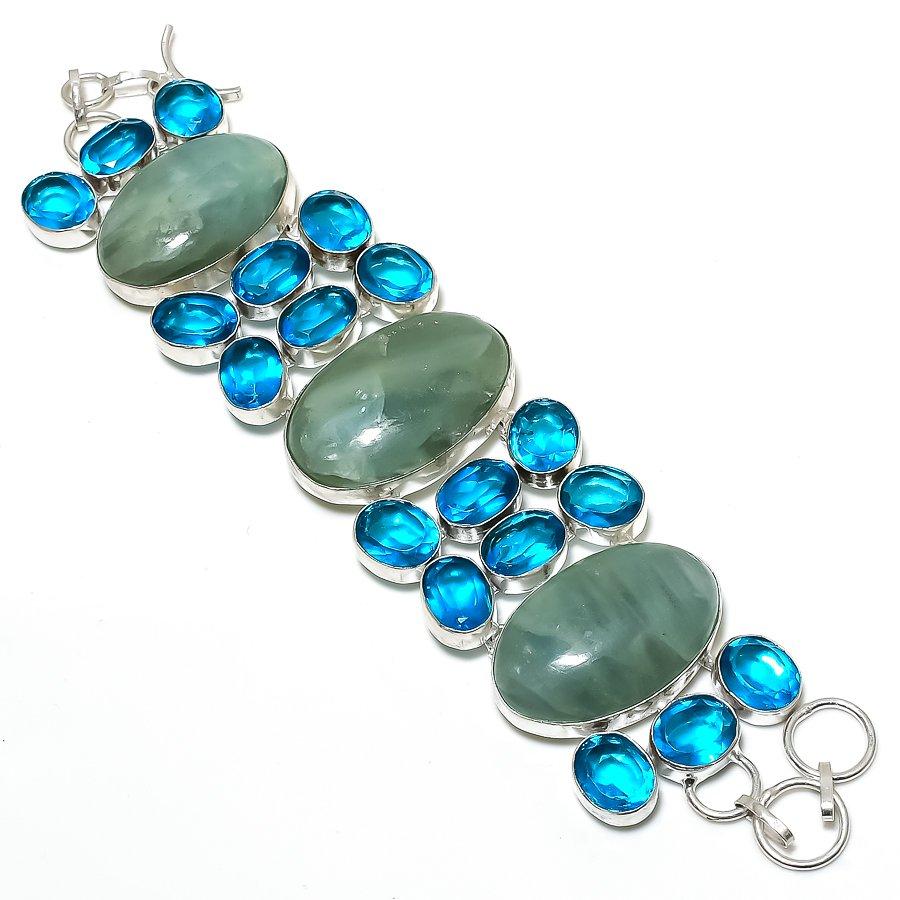 Аквамарин, голубой топаз, браслет ручной работы из стерлингового серебра 925 пробы, 7-8 дюймов, W5E26
