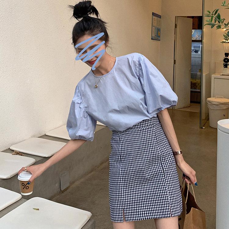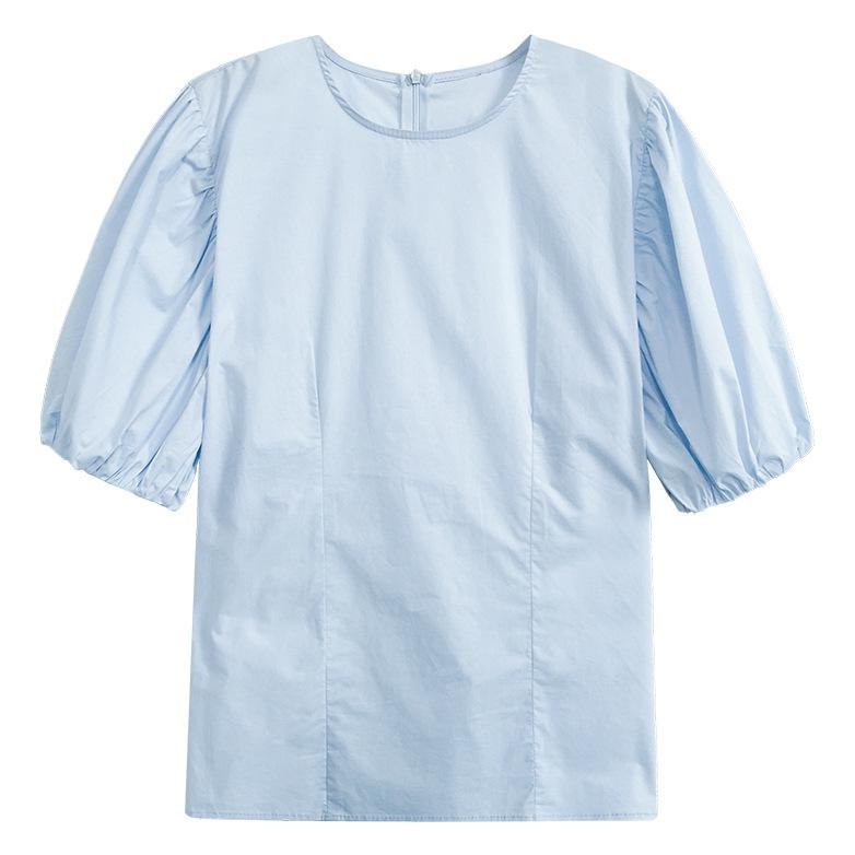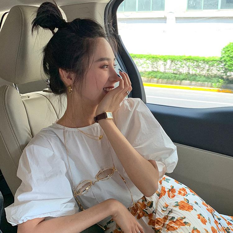 Повседневная женская рубашка, женская рубашка с тонким круглым воротником и коротким рукавом, свободный пуловер с рукавами-фонариками, белая блузка для студентов, темперамент, элегантный модный топ