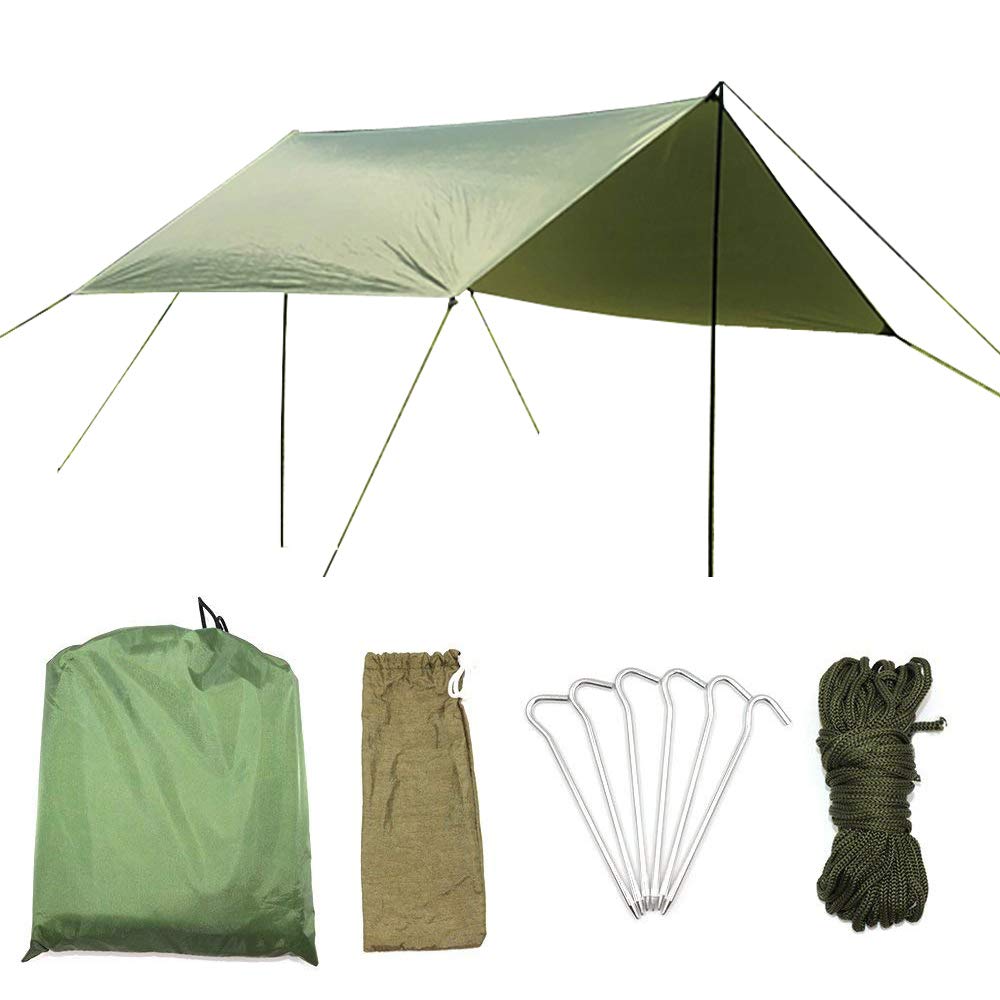 AUWOO водонепроницаемый брезент легкий тент солнцезащитный укрытие портативный тент тень кемпинг с кейсом для хранения для людей 2-6 (Армейский Зеленый)