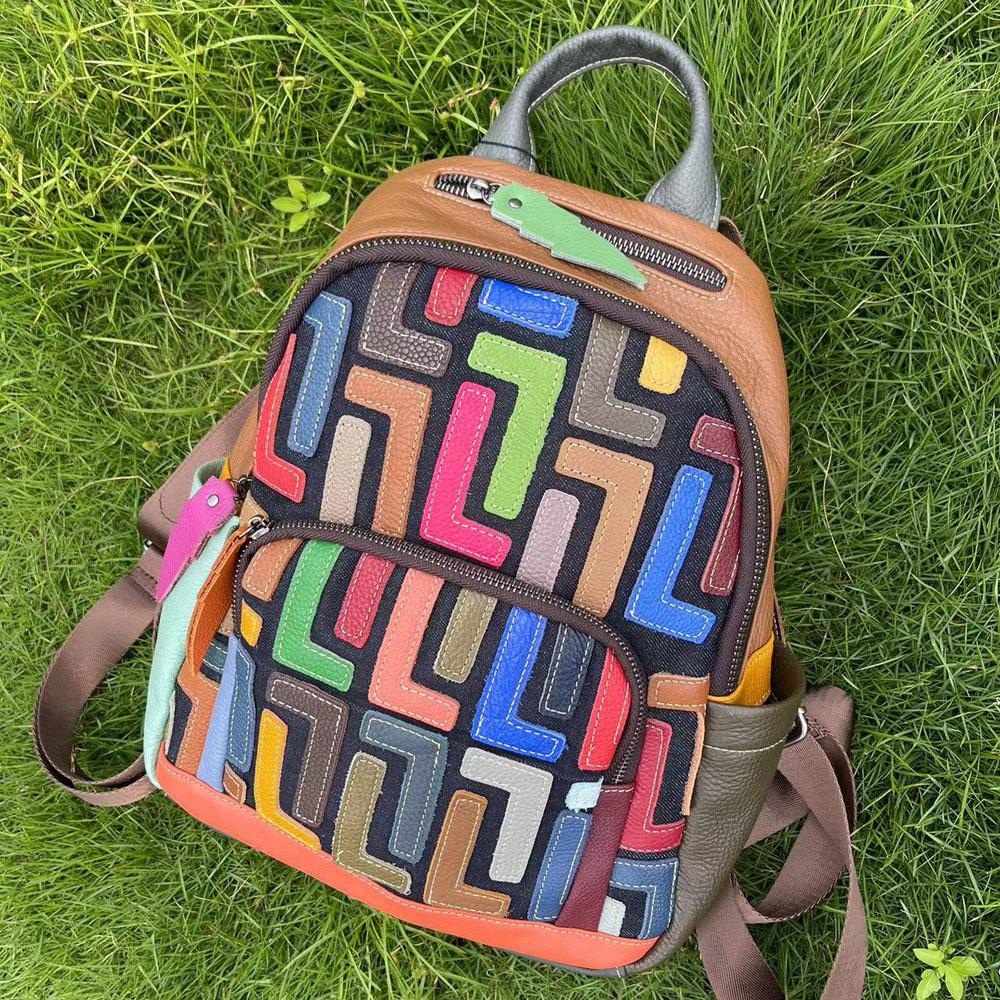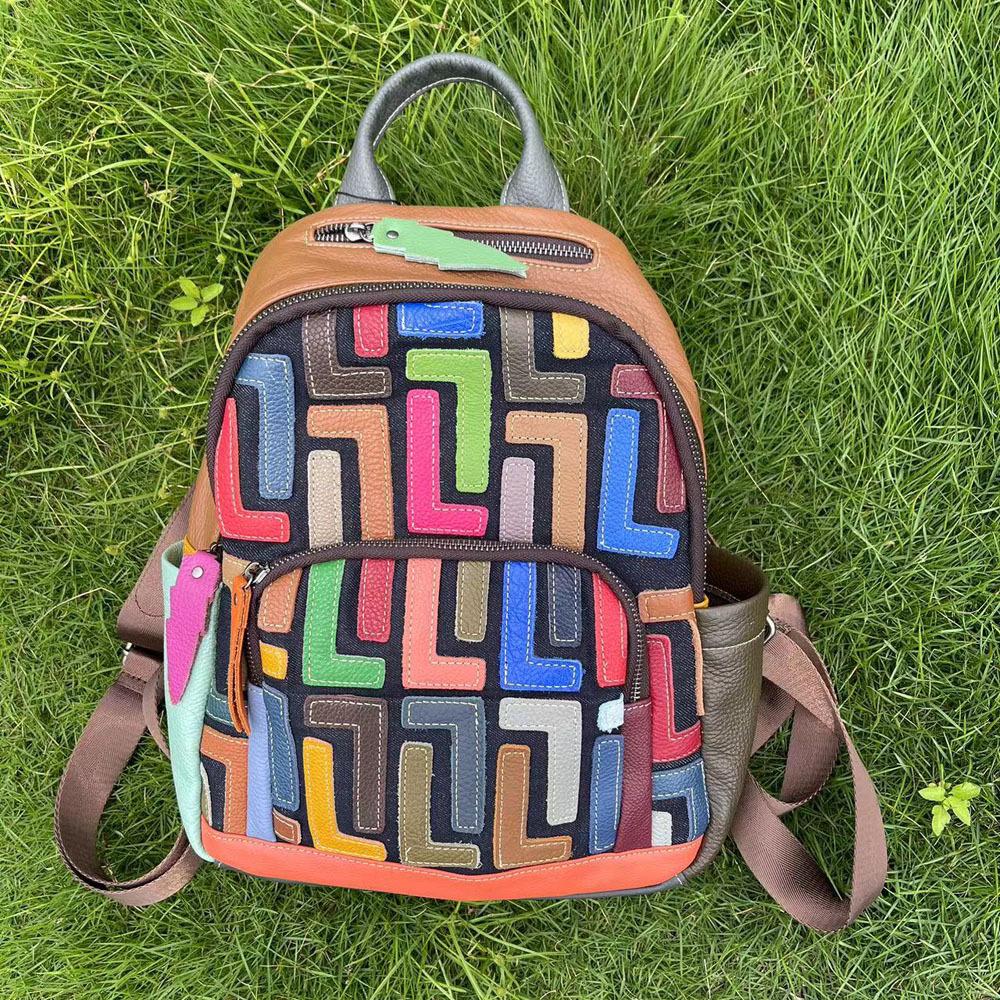 ткань: Цветная кожа, высококачественная воловья кожа, черный деним на дне.