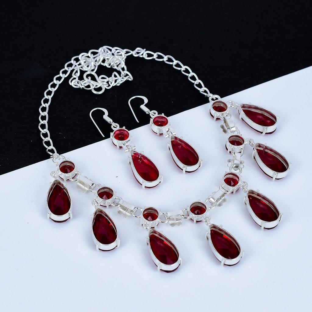 Этот потрясающий комплект из ожерелья и серег демонстрирует сверкающие драгоценные камни, выполненные из высококачественного серебра 925 пробы.. Драгоценные камни в форме слезы придают элегантность и изысканность, идеально подходят для особых случаев или повседневного ношения.. Легкая и удобная конструкция делает его идеальным выбором для легкой укладки.
