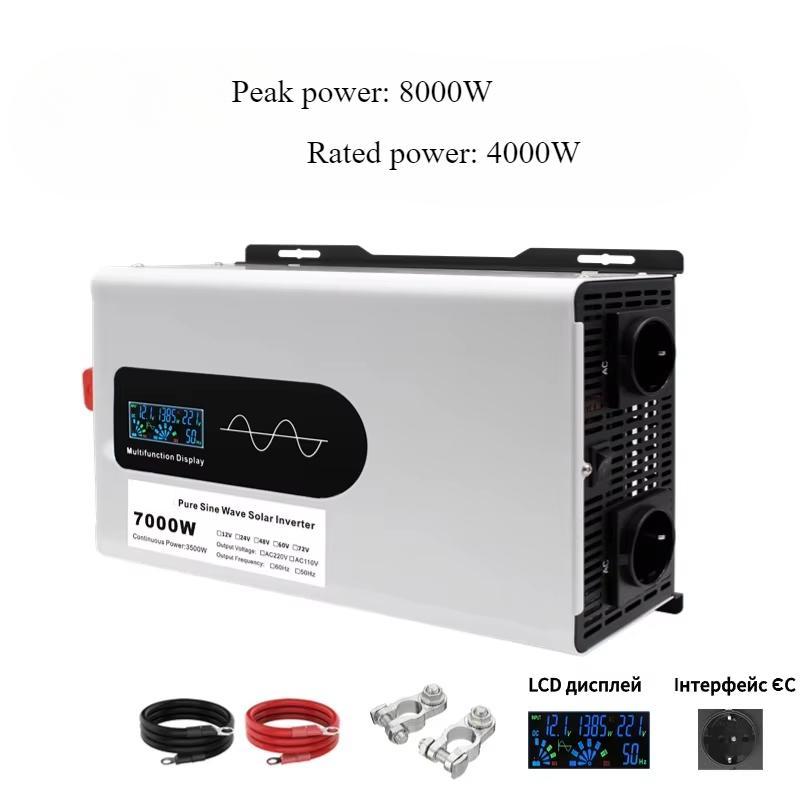 Инвертор мощностью 8000 Вт, постоянная мощность 4000 Вт, пусковая мощность 8000 Вт.