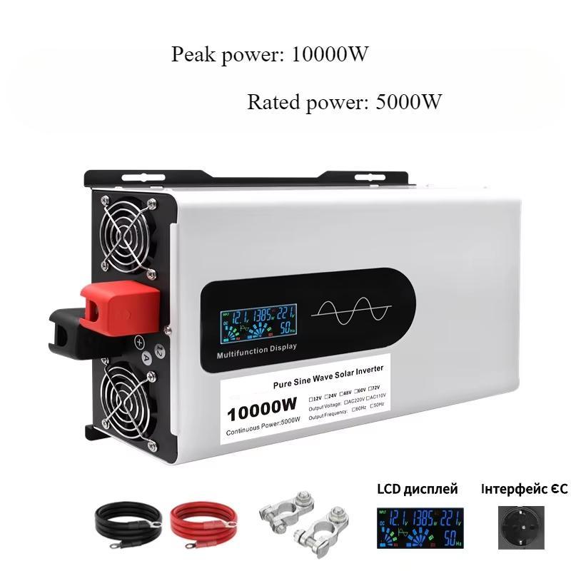Инвертор мощностью 10000 Вт, постоянная мощность 5000 Вт, пусковая мощность 10000 Вт.