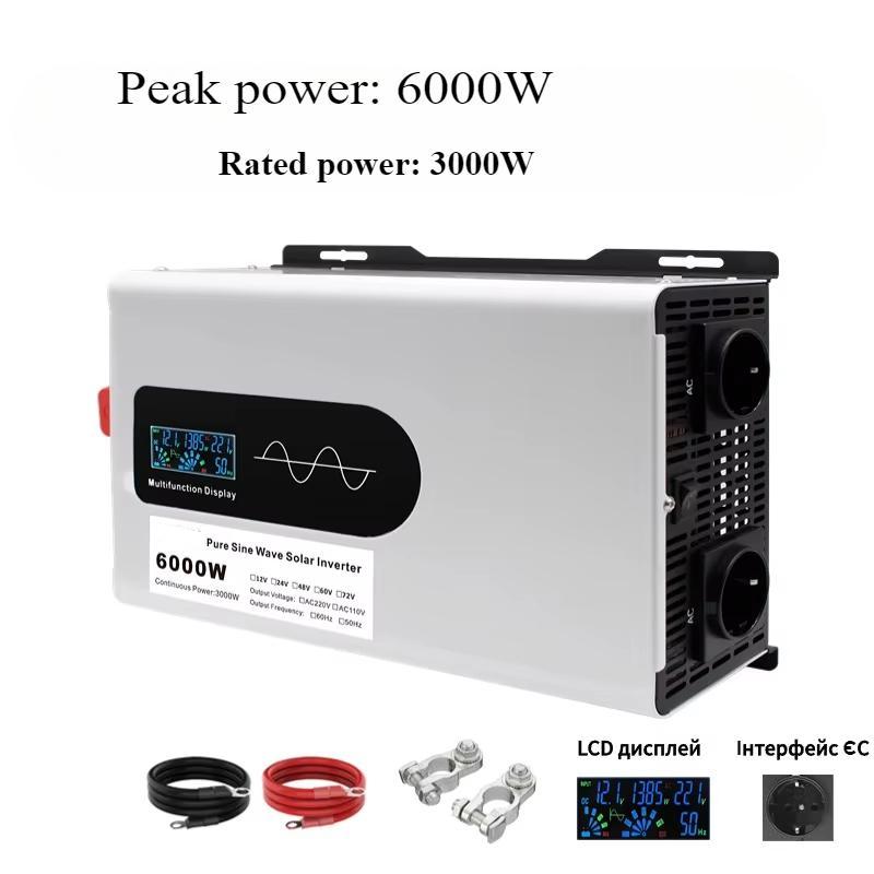 Инвертор мощностью 6000 Вт, постоянная мощность 300 Вт, пусковая мощность 6000 Вт.
