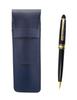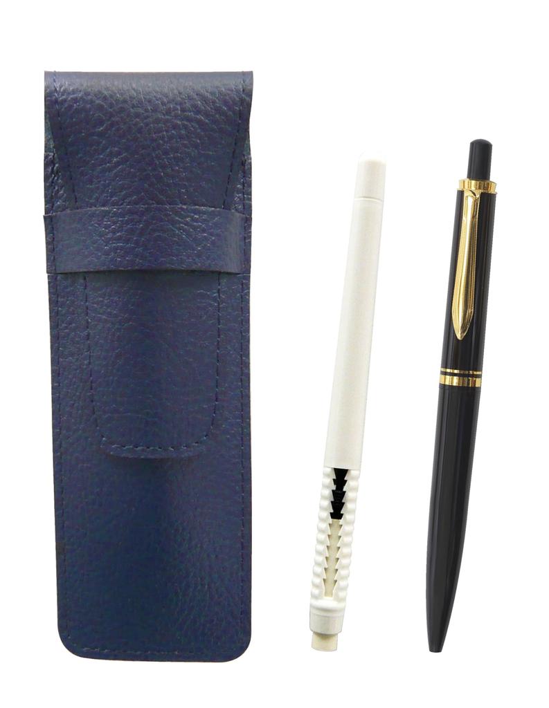 Пенал из зернистой кожи, синий ластик, белые и латунные детали в евростиле, набор механических карандашей ударного типа, черный в форме ручки SASLMC46W-NXS-B