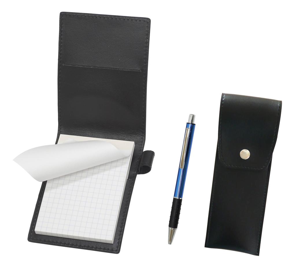 Переработанная мини-обложка для блокнота из коровьей кожи черная с круглым кнопочным пеналом черный металлический стержень шариковая ручка набор синяя & LS022PB-BRSB-WZ2067BP-L