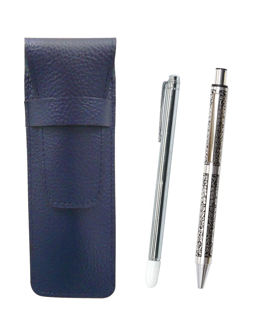 Футляр для карандашей из зернистой кожи, синий металлический индикатор и толстый стержень NQ30, набор из металлической шариковой ручки с прямым стуком, виноградный SASL-701S-NQ30B-V