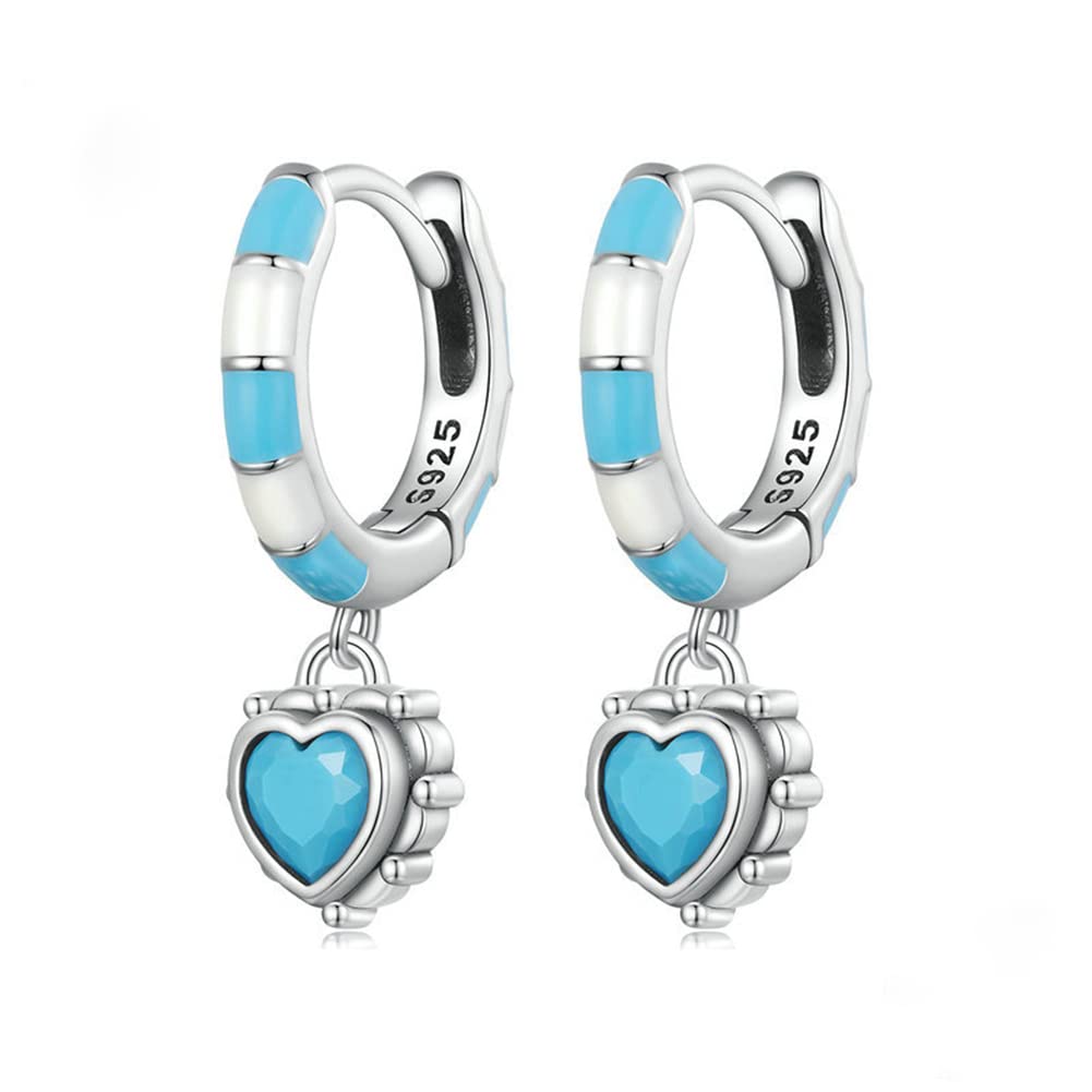 Rockyu Earrings for 925 Turquoise Heart Hoop Swaying Ring Sterling Hypoallergenic to Birthday Jewelry Women, Small, Beautiful, Silver, Earrings,