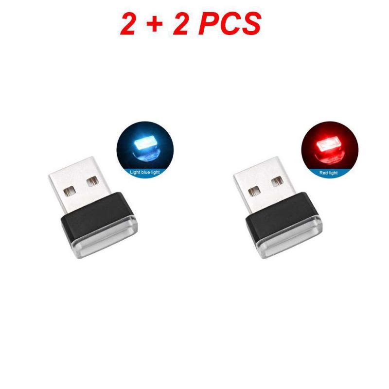 4 шт. USB светодиодный автомобильный светильник для создания атмосферы в салоне, подключаемый USB декоративный ночник, портативный комплект автомобильного окружающего освещения, универсальный автомобиль