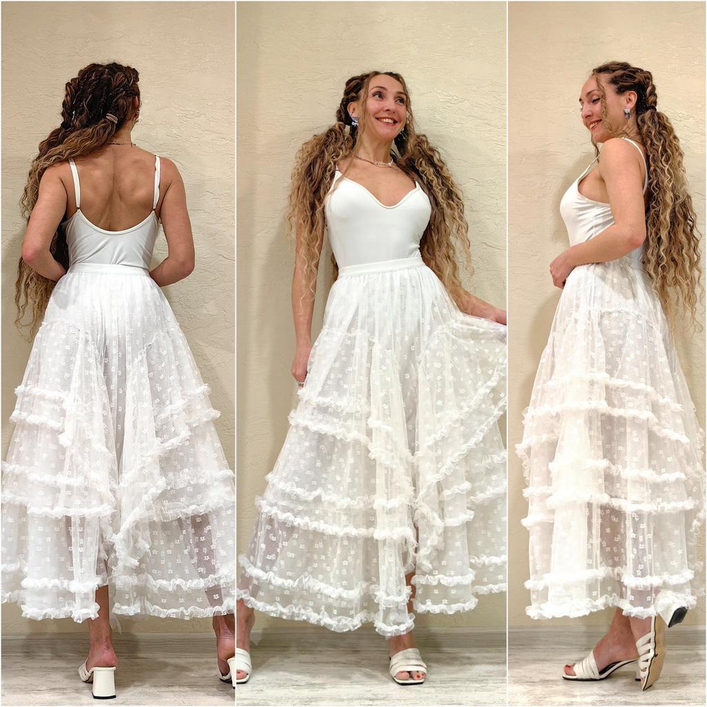 Воздушная многослойная белая юбка-сетка 🤍🕸️ Всем солнечный приветик 👋😉 Хоть погулять по парку, хоть замуж в ней выходи 😃 Прозрачность и полупрозрачность сейчас на пике популярности 🌟 А юбка полупрозрачная, не смотря на подклад и многослойность 😊 Конечно, с "голой" 🍑 не пойдёшь, но это легко обыгрывается! Например, если надеть не привычные трусишки, а бесшовные шортики/велосипедки 🫶 Или самое популярное - это прикрыть паховую зону, например, футболкой, жакетом, пиджаком, свитером 🥰 И образ будет очень стильным 🔥 Юбка на мне села очень-очень свободно. Мои параметры: 🎗 рост 160см 🎗 вес 54кг 🎗 длина плеч 40см 🎗 объём груди 93см (75D) 🎗 объём талии 63см 🎗 объём бёдер 93см. Качество: 🤍 ткань сетка в несколько слоёв 🕸️ сетка мягкая и на ней изображены мелкие цветы 🤍 белый подклад привычный синтетический, приятный к телу 🕸️ на талии широкая резинка 🤍 швы ровные 🕸️ качество отличное. Точные замеры юбки: 📏 ОТ - 64 - 90см 📏 ОБ подьюбника - 128см 📏 длина подъюбника - 59см 📏 длина юбки - 88см. Я юбкой довольна очень-очень и рекомендую её всеми ручками 💞🤗💞 Спасибо, продавцу и Джуму 😘 Чмок-чмок-чмок, всех кто со мной на Джумике 😘 Желаю удачных покупок 🛍😊 терпения 🤗 и весны в душе 🌈☀️🌱🦋🌼💕🐞🌳🕊 До скорого 🙌😊 Песня во втором видео: Мируна Диаконеску "Cupidon" 🎶💃🎶