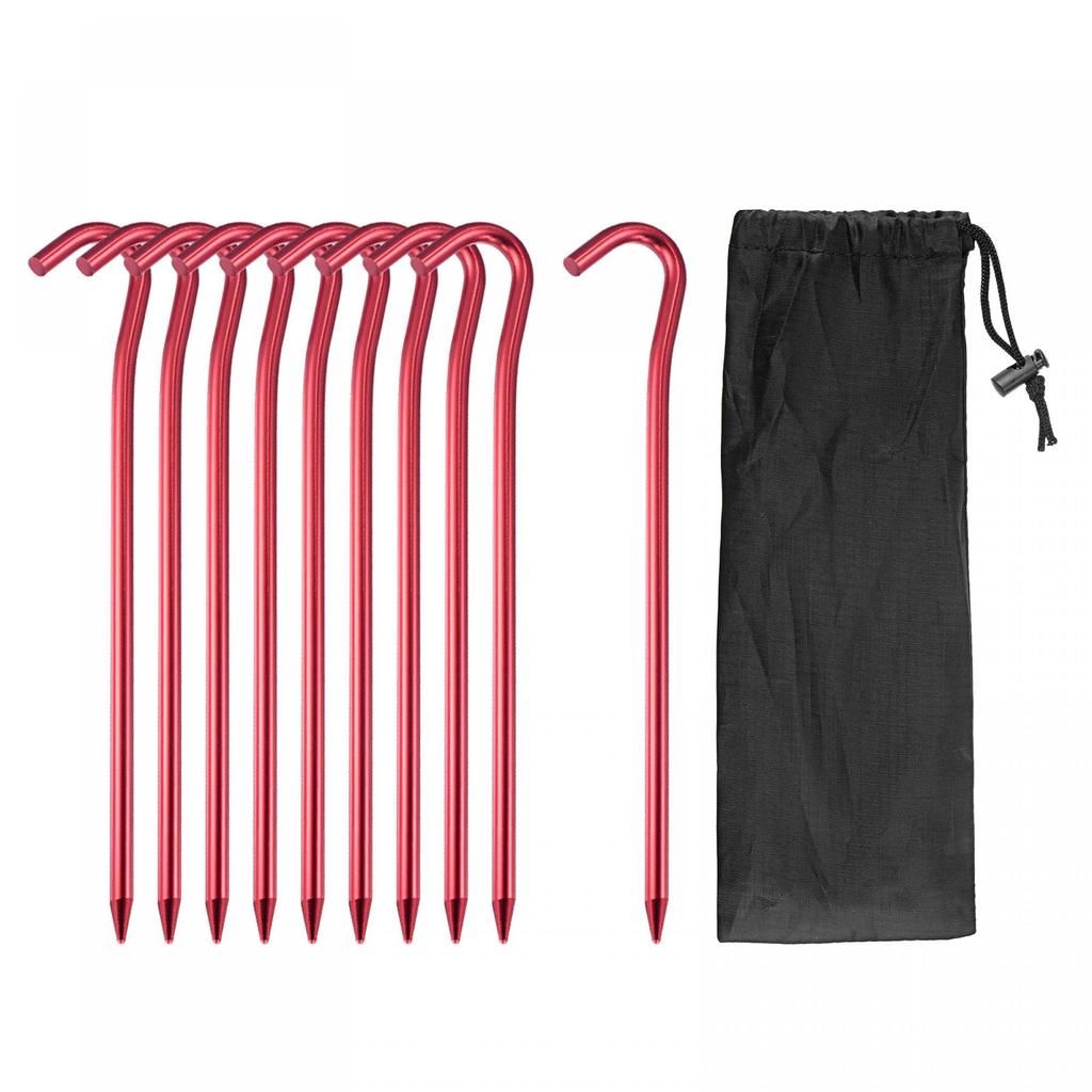 цвет: Красный материал: Размер кольев из алюминиевого сплава: 183x6 мм (L*Диаметр) Ширина открытия крючка: Содержимое упаковки 23 мм: 10 колышков для палатки, 1 сумка для хранения